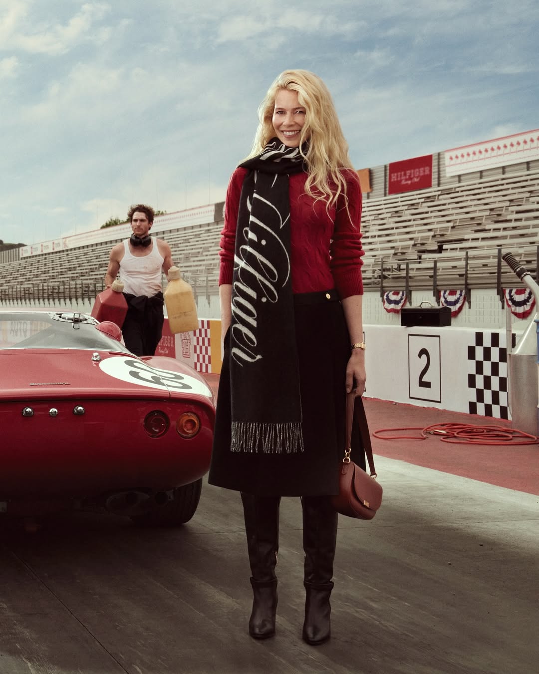 A Tommy Hilfiger apresentou a campanha global de outono 2025, “The Hilfiger Racing Club”, estrelada pelo ator Nicholas Hoult e pela supermodelo Claudia Schiffer. O conceito leva a herança “preppy” para a pista, em clima de nostalgia do automobilismo de luxo.